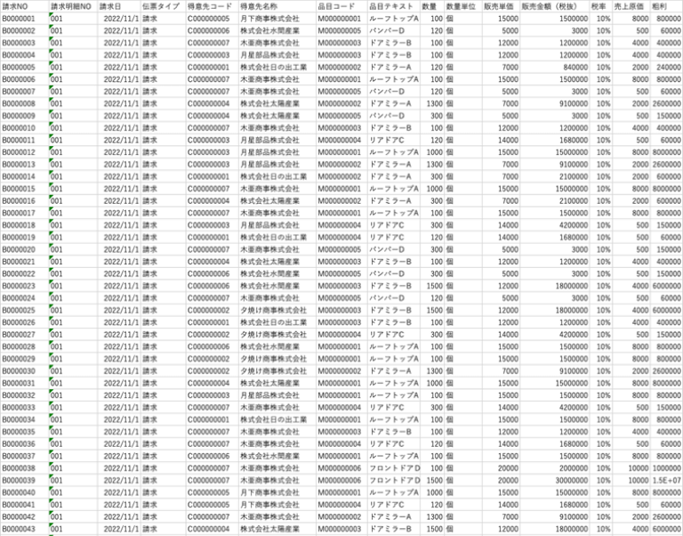 仕入や販売の実績、さらに在庫の受払や月初月末在庫をcsvファイルで出力し、